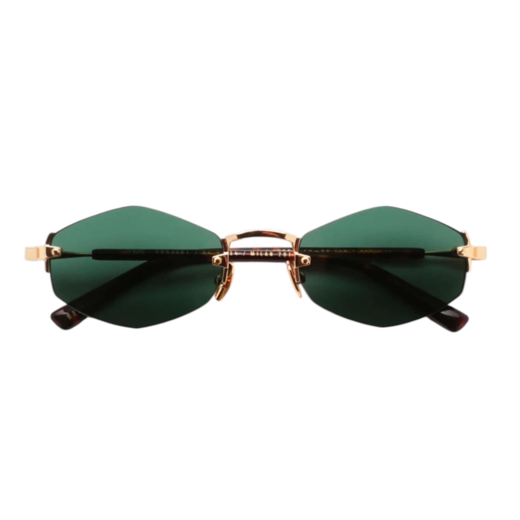 Unisex γυαλιά ηλίου GAST σε γεωμετρικό σχήμα. Ο σκελετός είναι μεταλλικός σε χρυσό χρώμα με πράσινους φακούς που έχουν εσωτερική αντιανακλαστική επίστρωση (anti reflective coating) και παρέχουν ολοκληρωμένη προστασία από την UV ακτινοβολία.