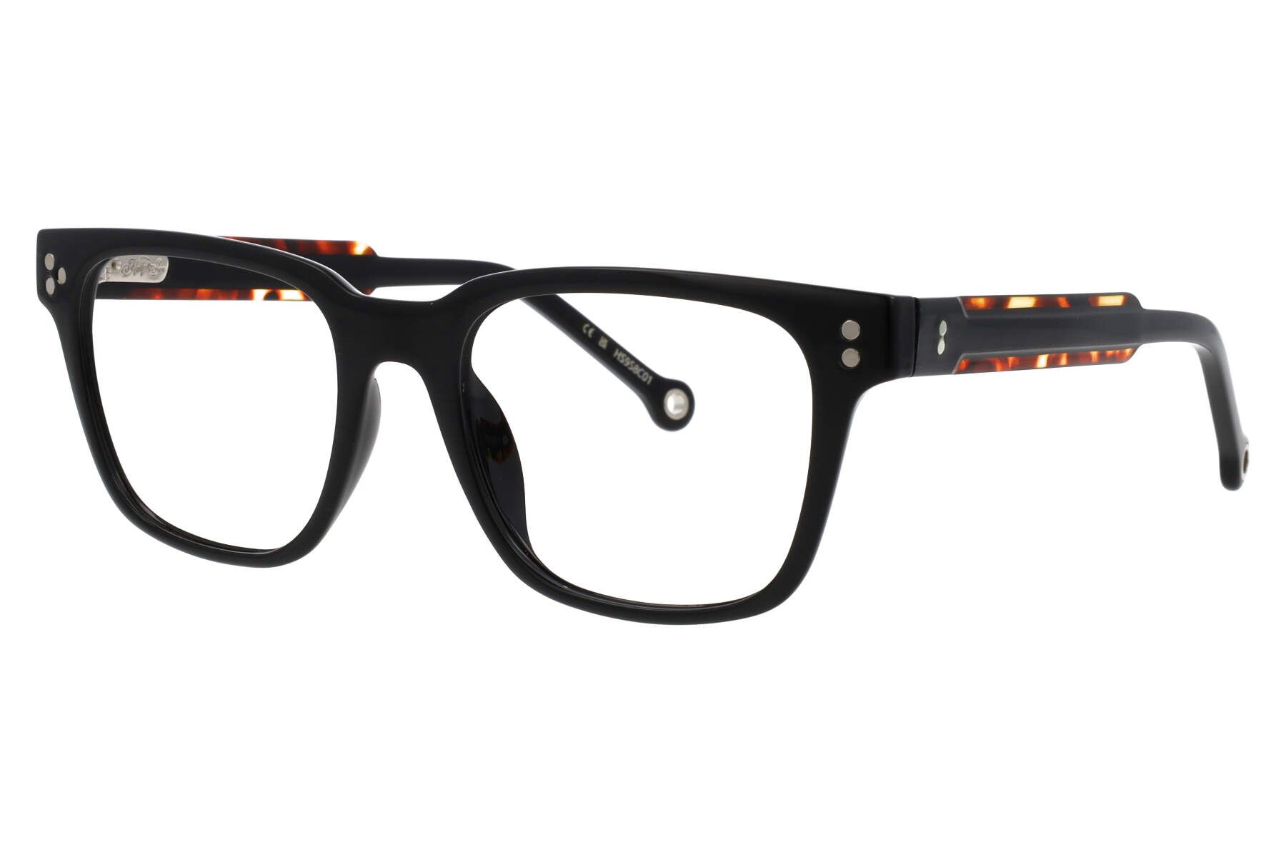 Unisex γυαλιά οράσεως HALLY & SON σε τετράγωνο σχήμα. Ο σκελετός είναι κοκάλινος σε μαύρο χρώμα και διατίθεται με ΔΥΟ Clip-on, στο χρώμα του σκελετού με fume φακούς και με μπλε φακούς, που παρέχουν ολοκληρωμένη προστασία από την UV ακτινοβολία.