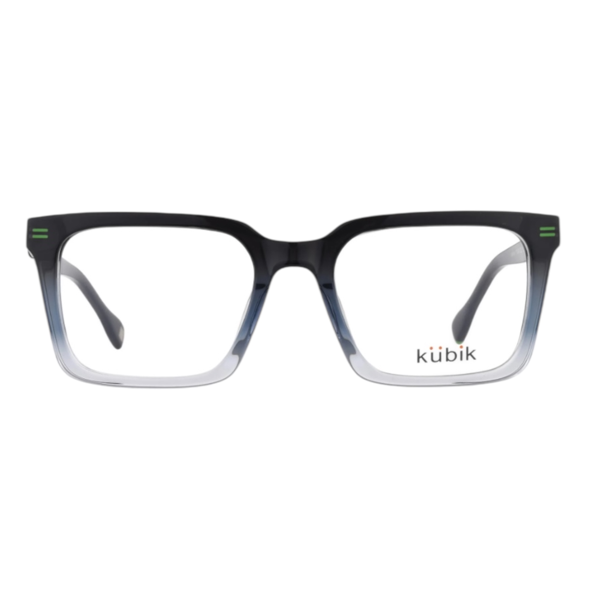 Ανδρικά γυαλιά οράσεως KUBIK σε τετράγωνο σχήμα. Ο σκελετός είναι κοκάλινος σε συνδυασμό μαύρου, μπλε και διάφανου.