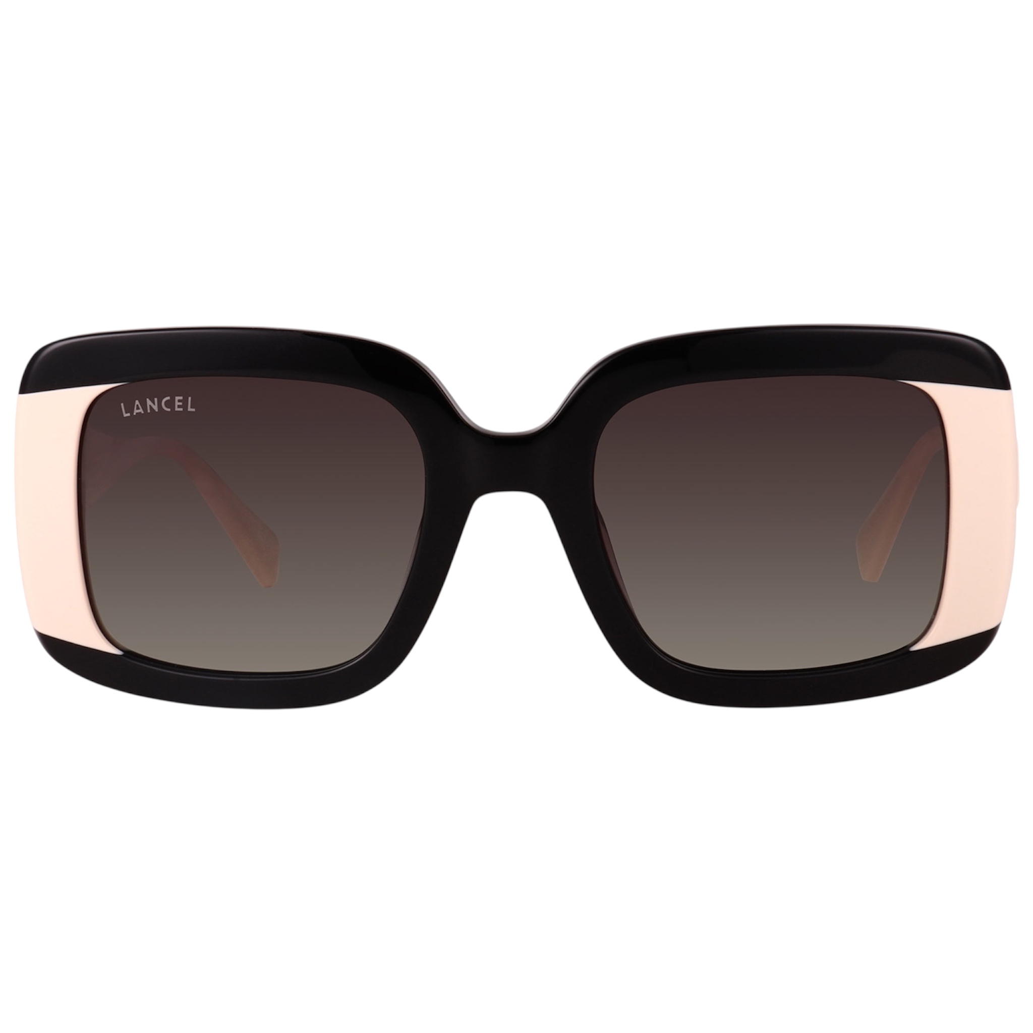 Γυναικεία γυαλιά ηλίου LANCEL σε τετράγωνο σχήμα. Ο σκελετός είναι κοκάλινος σε μαύρο-μπεζ με fume φακούς που παρέχουν ολοκληρωμένη προστασία από την UV ακτινοβολία.