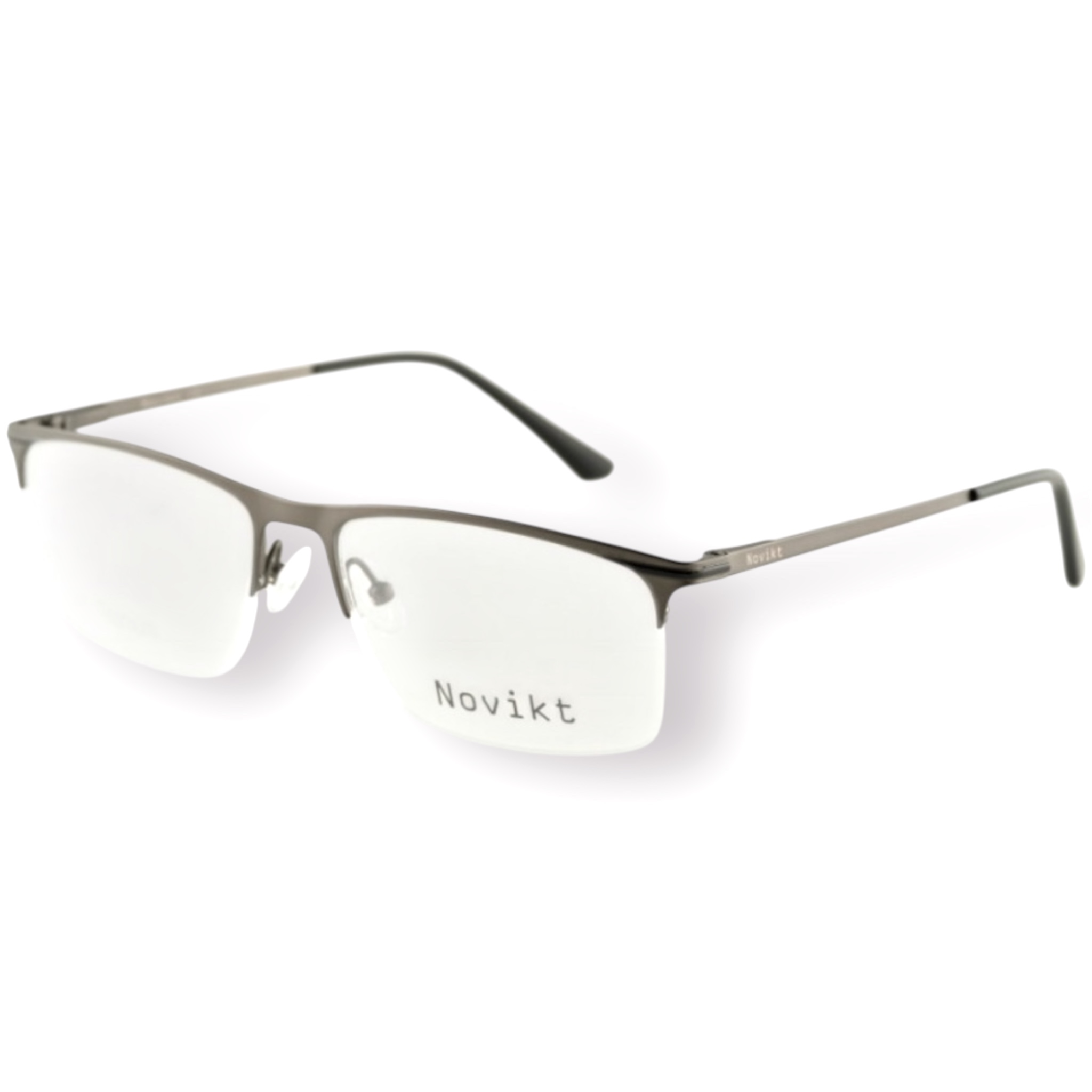 Ανδρικά γυαλιά οράσεως NOVIKT σε ορθογώνιο σχήμα. Ο σκελετός είναι μεταλλικός nylor σε σκούρο γκρι χρώμα (ανθρακί) με μαύρες λεπτομέρειες, ενώ είναι ιδιαίτερα ελαφρύς, λόγω του υλικού κατασκευής του (τιτάνιο).
