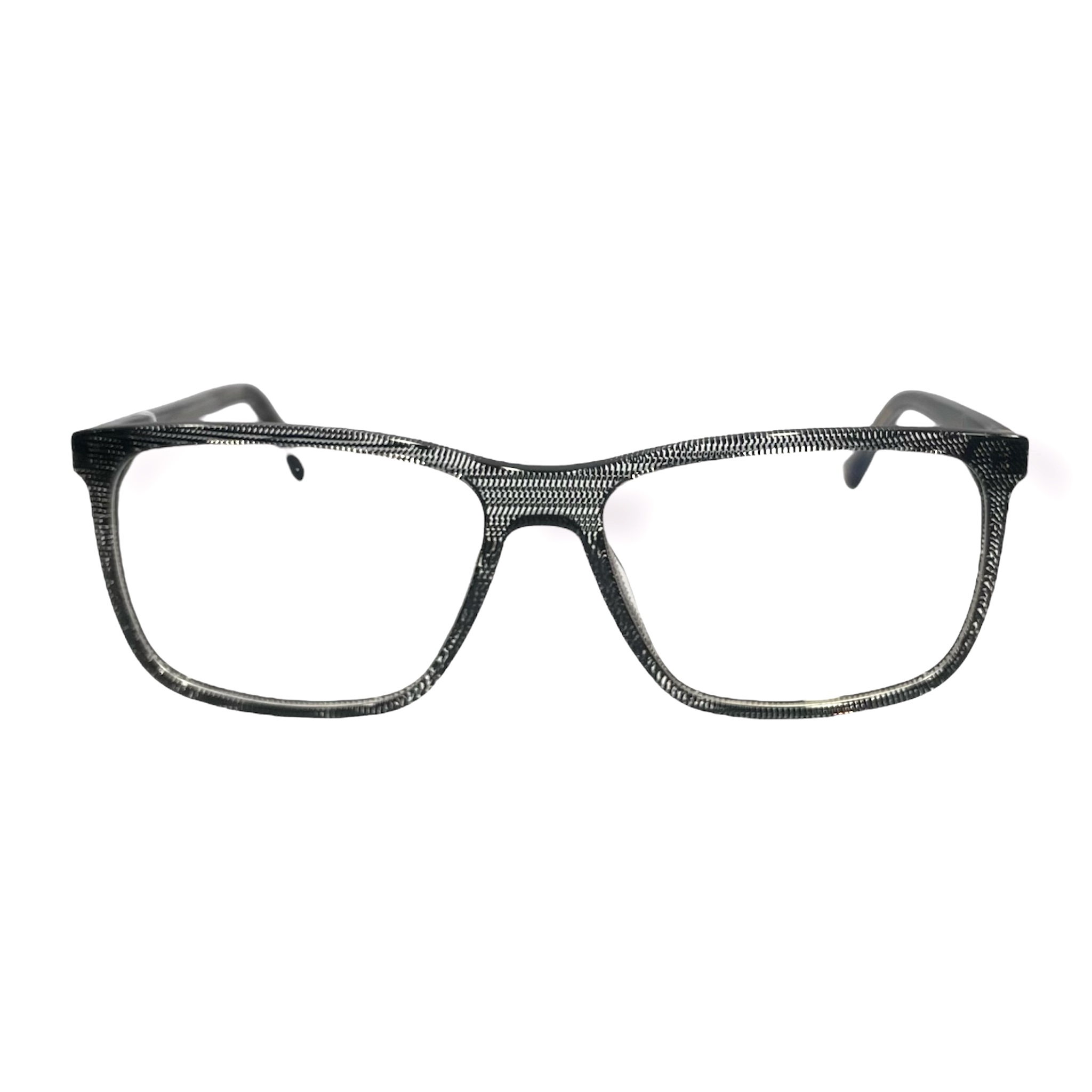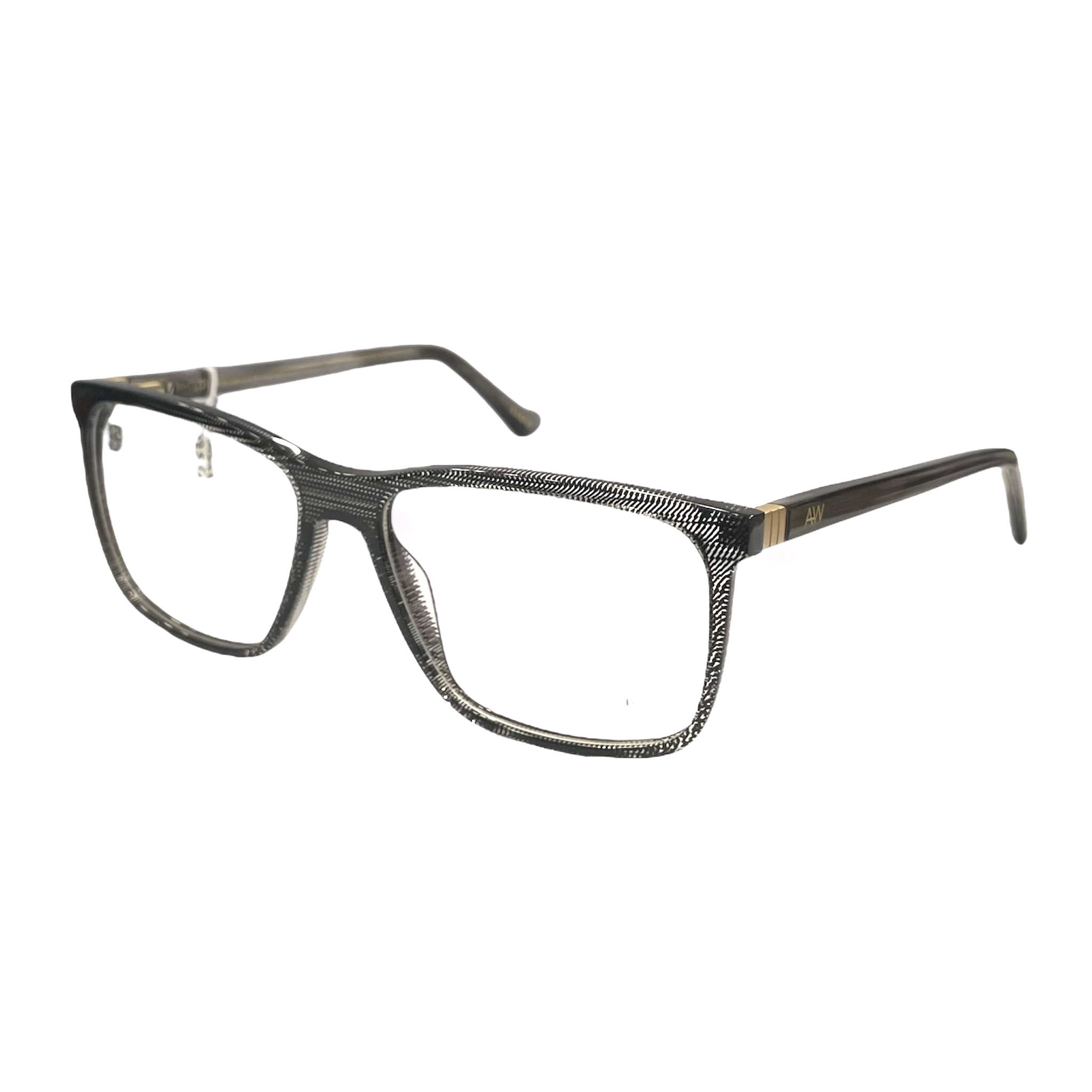Unisex γυαλιά οράσεως ALEXANDER WINTCH σε τετράγωνο σχήμα. Ο σκελετός είναι διάφανος (κοκάλινος) με πυκνές μαύρες κουκίδες και γκρι βραχίονες.