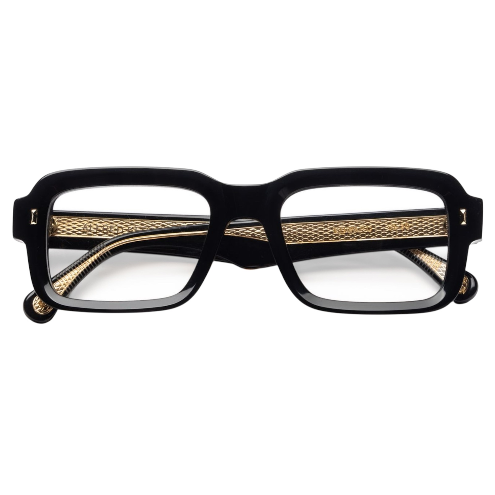 Unisex γυαλιά οράσεως ALFRED KERBS σε τετράγωνο σχήμα. Ο σκελετός είναι κοκάλινος σε μαύρο χρώμα με χρυσές λεπτομέρειες.