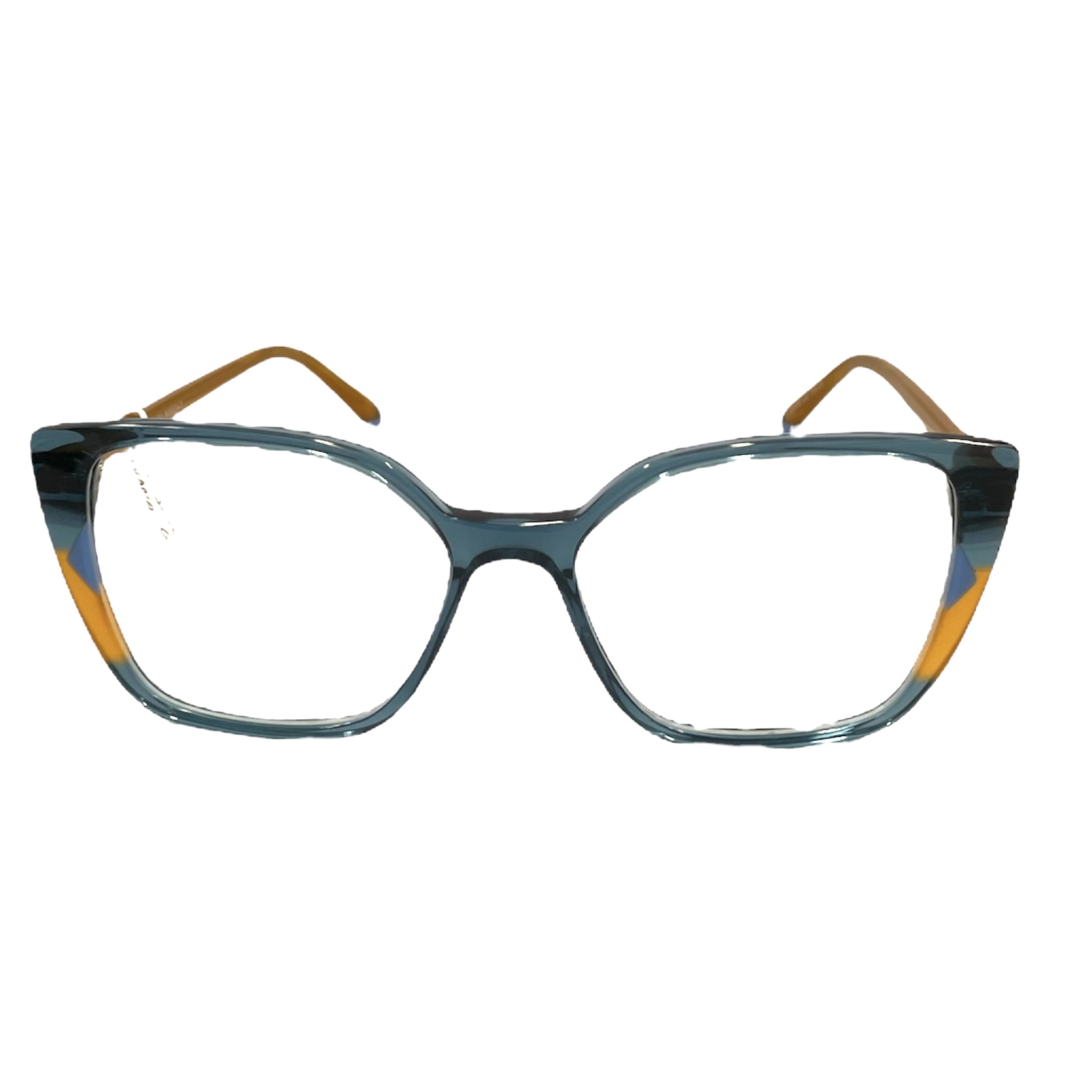 Γυναικεία γυαλιά οράσεως ANTONIO MIRO σε σχήμα πεταλούδα. Ο σκελετός είναι κοκάλινος σε συνδυασμό πετρόλ και μπεζ χρώματος.