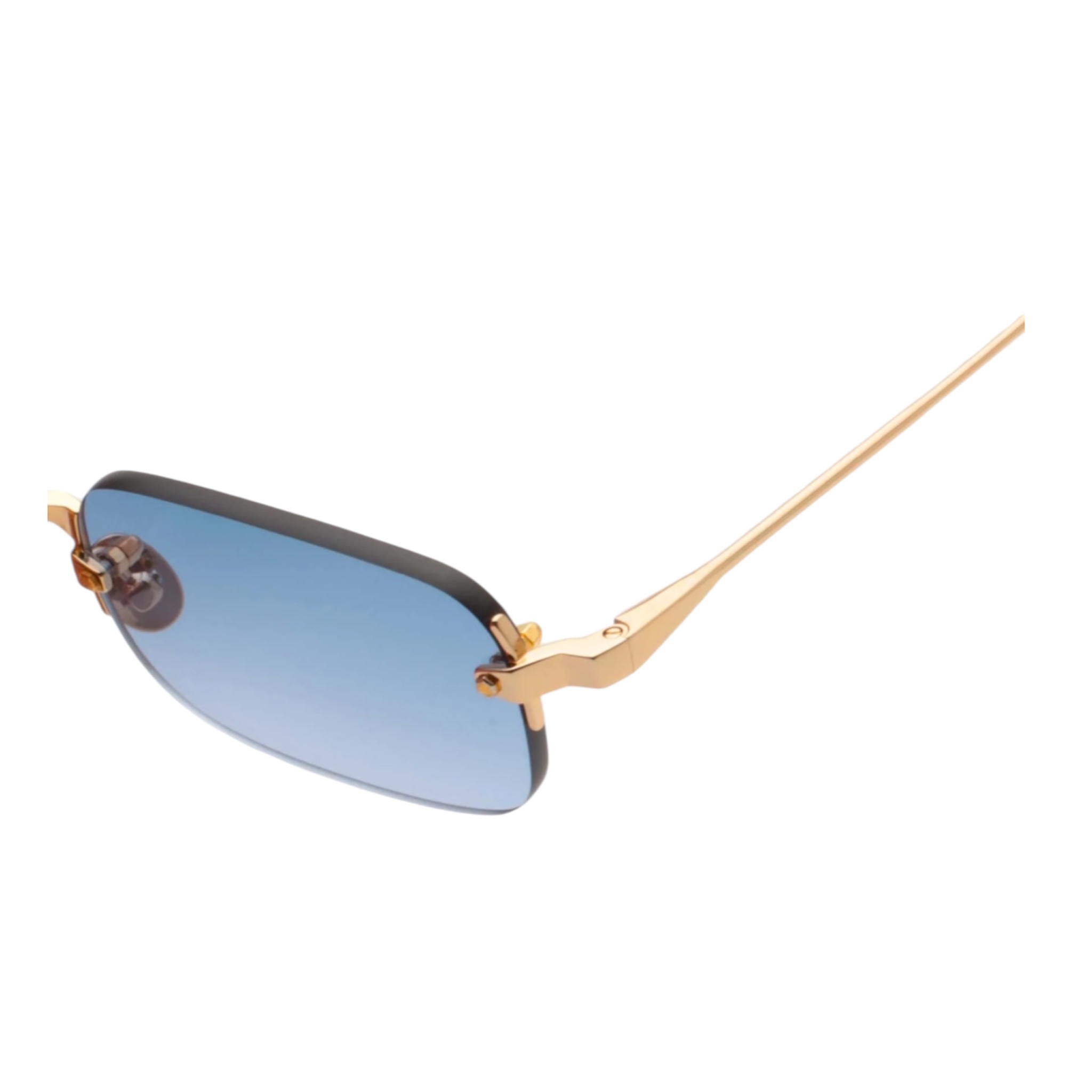 Unisex γυαλιά ηλίου GAST σε ορθογώνιο σχήμα. Ο σκελετός είναι μεταλλικός σε χρυσό χρώμα με μπλε φακούς που έχουν εσωτερική αντιανακλαστική επίστρωση (anti reflective coating) και παρέχουν ολοκληρωμένη προστασία από την UV ακτινοβολία.