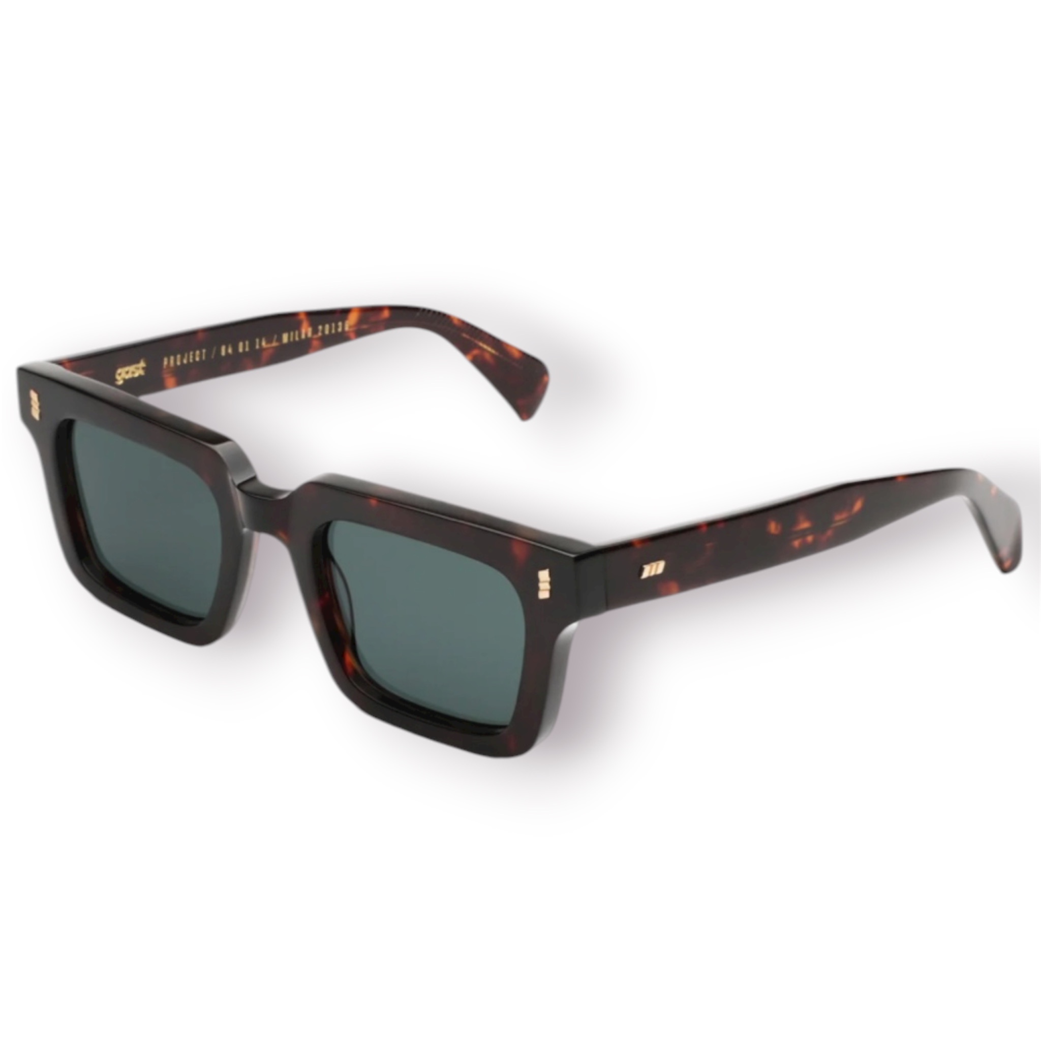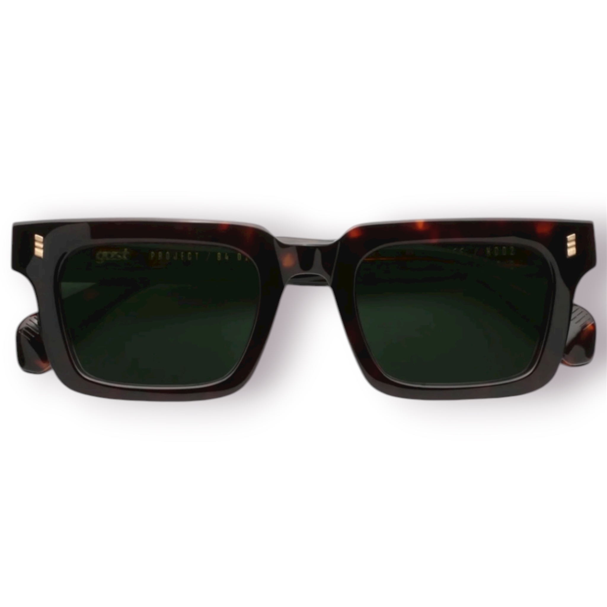 Unisex γυαλιά ηλίου GAST σε τετράγωνο σχήμα. Ο σκελετός είναι κοκάλινος σε καφέ ταρταρούγα με πράσινους φακούς που έχουν εσωτερική αντιανακλαστική επίστρωση (anti reflective coating) και παρέχουν ολοκληρωμένη προστασία από την UV ακτινοβολία.