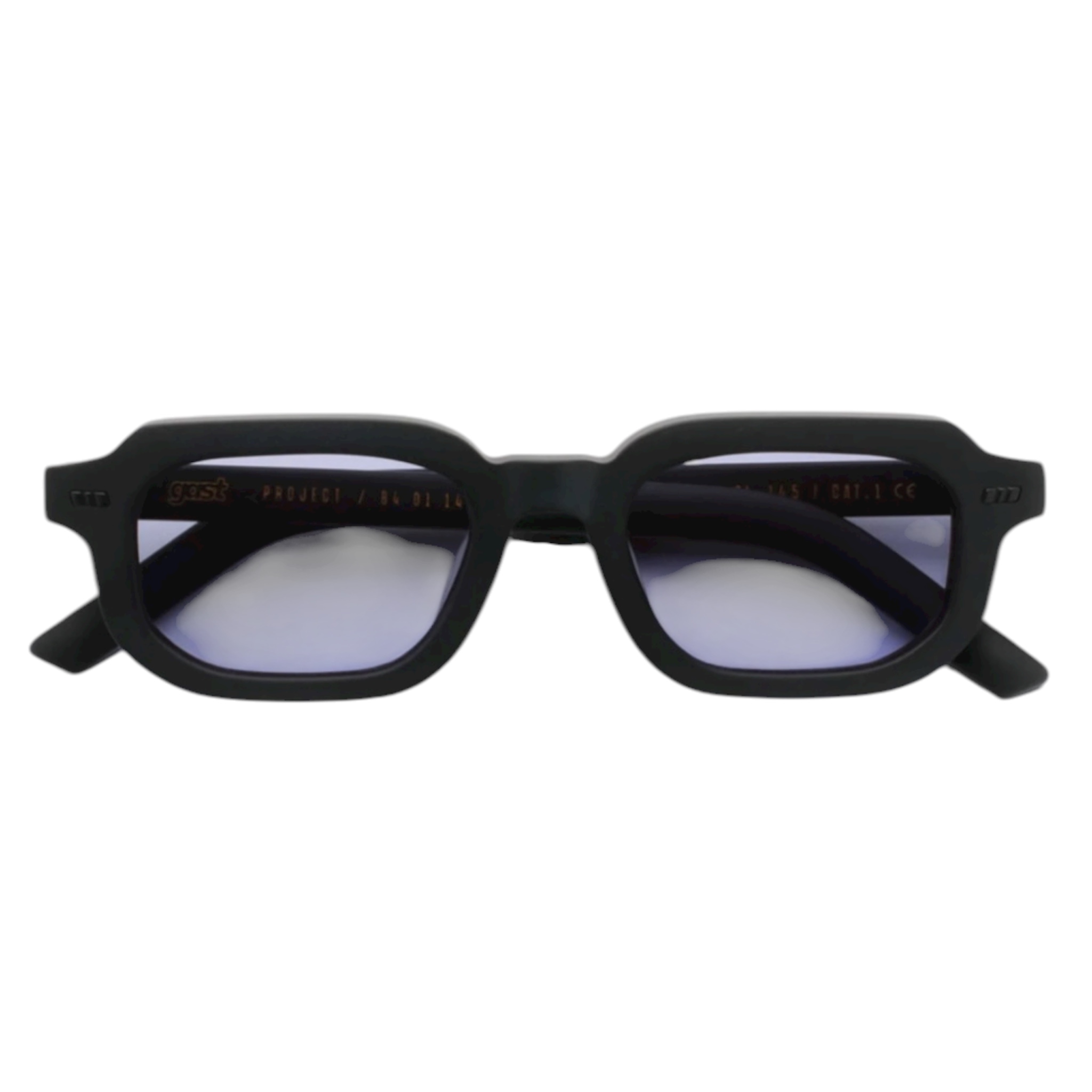 Unisex γυαλιά ηλίου GAST σε τετράγωνο σχήμα. Ο σκελετός είναι κοκάλινος σε μαύρο ματ χρώμα με μοβ φακούς που έχουν εσωτερική αντιανακλαστική επίστρωση (anti reflective coating) και παρέχουν ολοκληρωμένη προστασία από την UV ακτινοβολία.