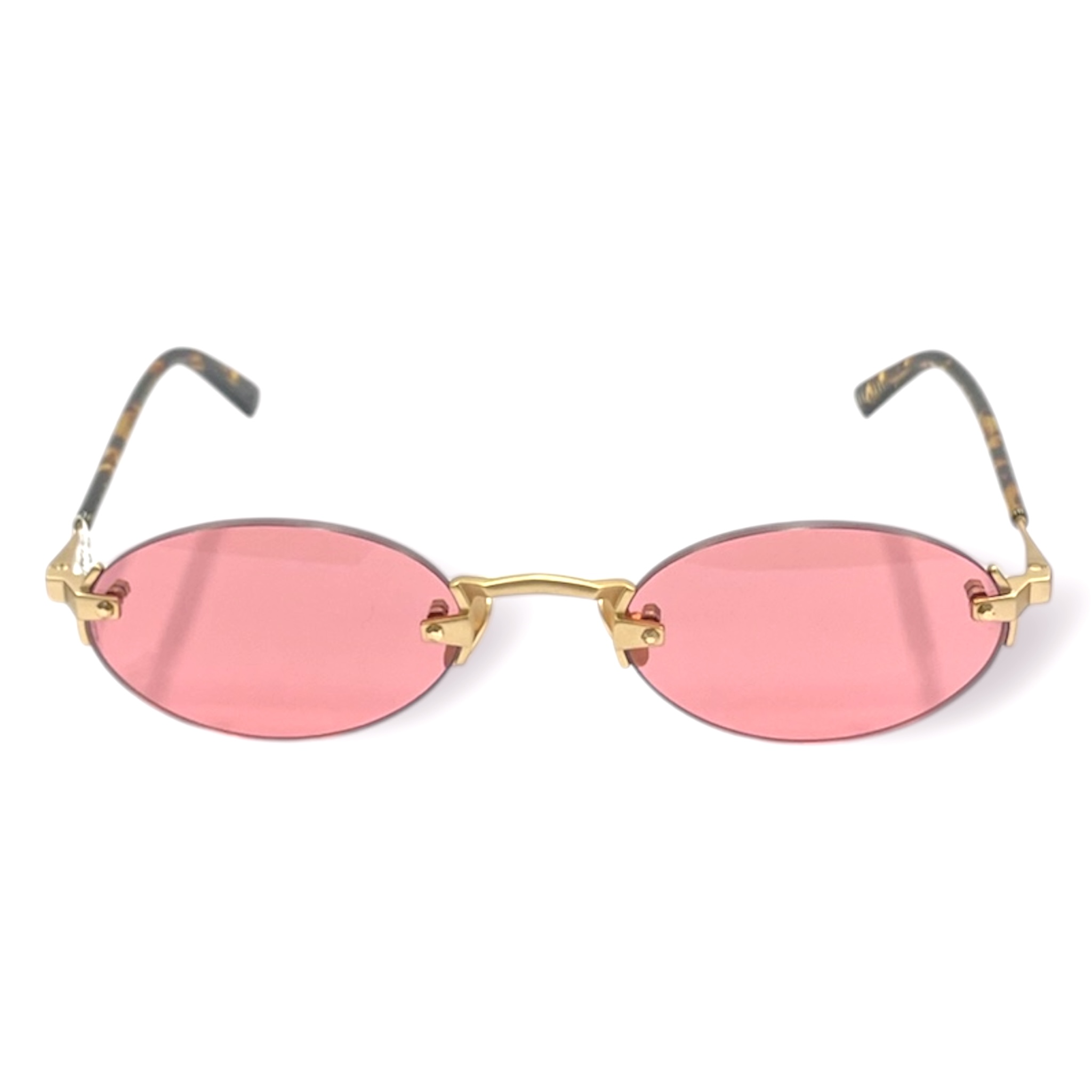Unisex γυαλιά ηλίου GAST σε οβάλ σχήμα. Ο σκελετός είναι μεταλλικός griff σε ματ χρυσό χρώμα με κοκάλινους βραχίονες και ροζ φακούς που έχουν εσωτερική αντιανακλαστική επίστρωση (anti reflective coating) και παρέχουν ολοκληρωμένη προστασία από την UV ακτινοβολία.