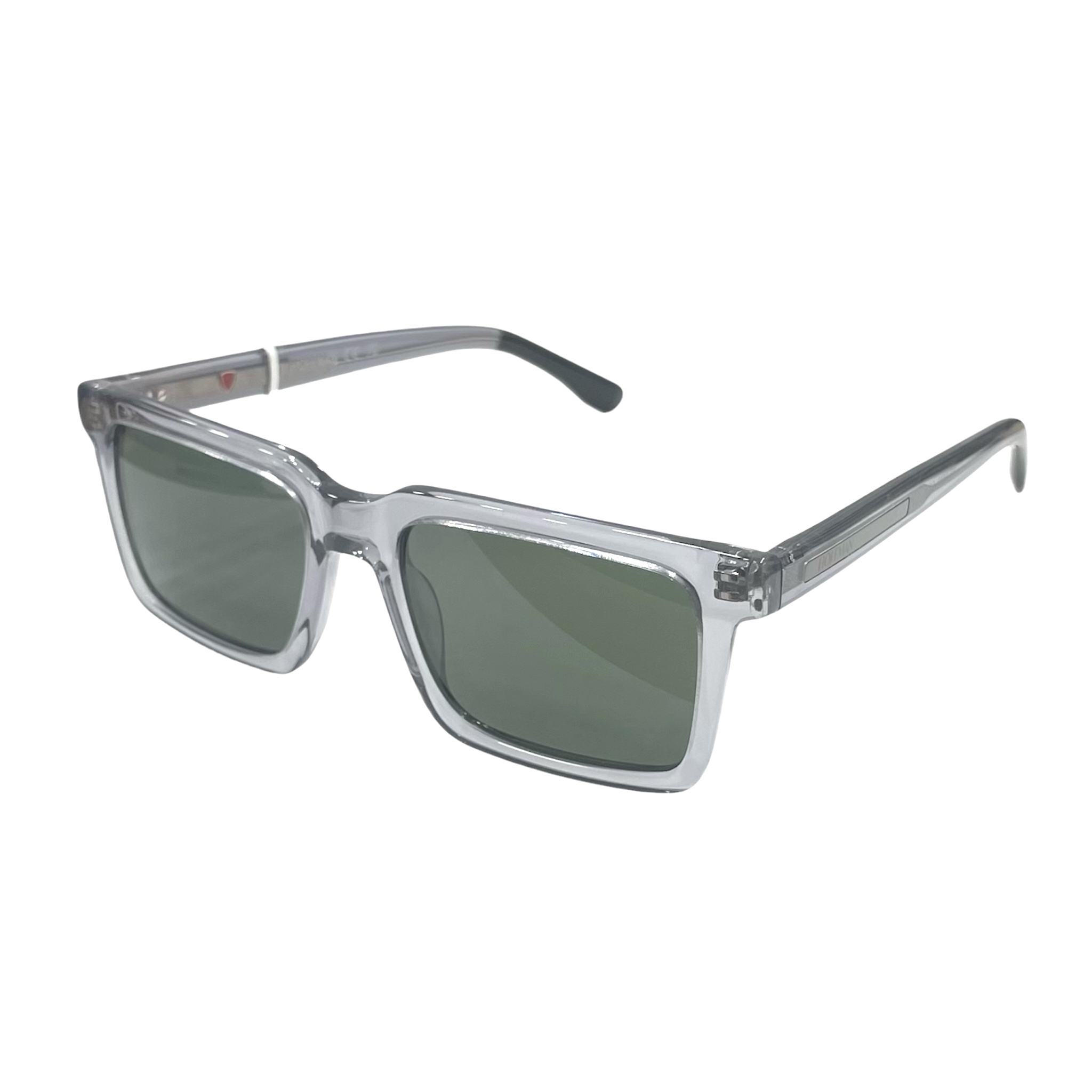 Ανδρικά γυαλιά ηλίου HOFFMAN σε τετράγωνο σχήμα. Ο σκελετός είναι κοκάλινος σε διάφανο γκρι χρώμα με πράσινους (g15) φακούς που έχουν εσωτερική αντιανακλαστική επίστρωση (antireflective coating) παρέχουν ολοκληρωμένη προστασία από την UV ακτινοβολία.