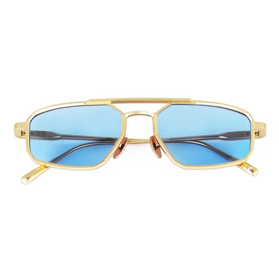 Unisex γυαλιά ηλίου JohNocera σε σχήμα aviator. Ο σκελετός είναι μεταλλικός σε χρυσό χρώμα με γαλάζιους φακούς (polarized) που παρέχουν ολοκληρωμένη προστασία από την UV ακτινοβολία.