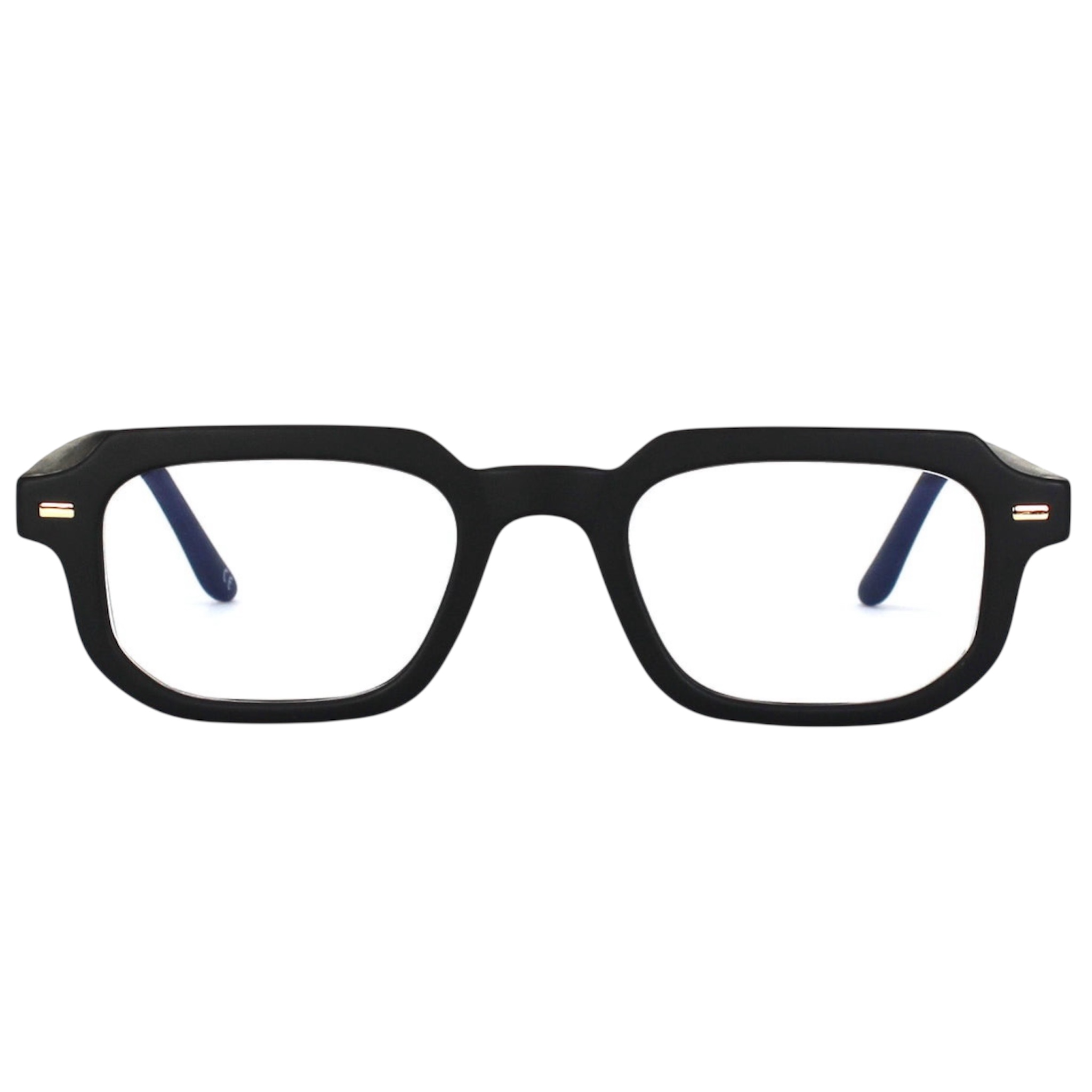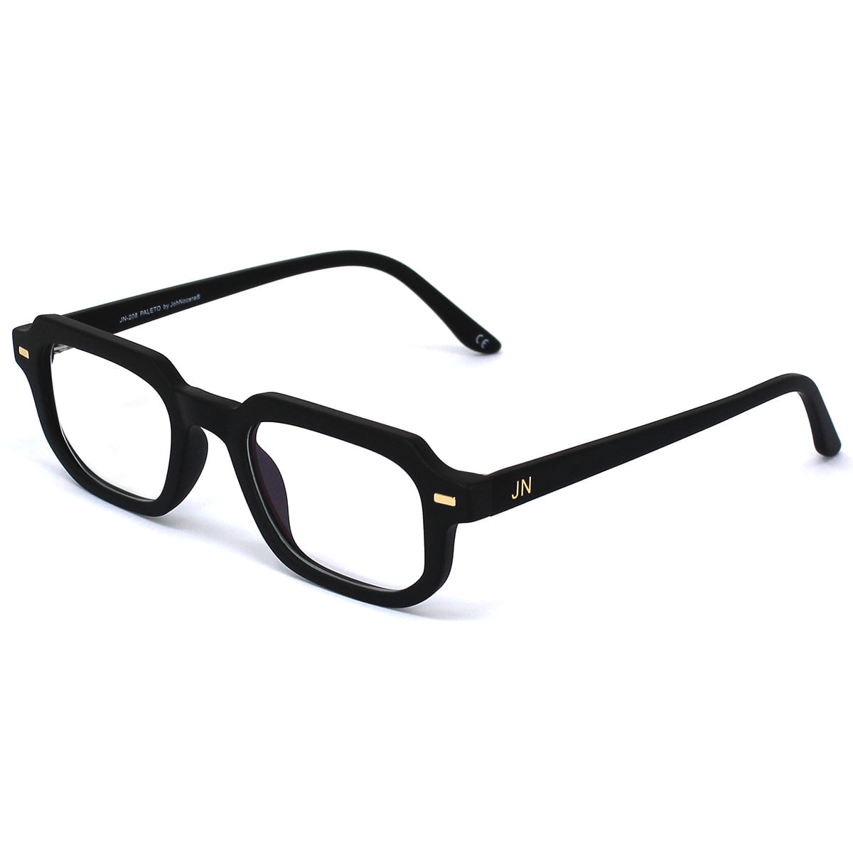 Unisex γυαλιά οράσεως JohNocera σε τετράγωνο σχήμα. Ο σκελετός είναι κοκάλινος σε μαύρο χρώμα και διαθέτει φακούς με φίλτρα για την μπλε ακτινοβολία που εκπέμπουν οι οθόνες.