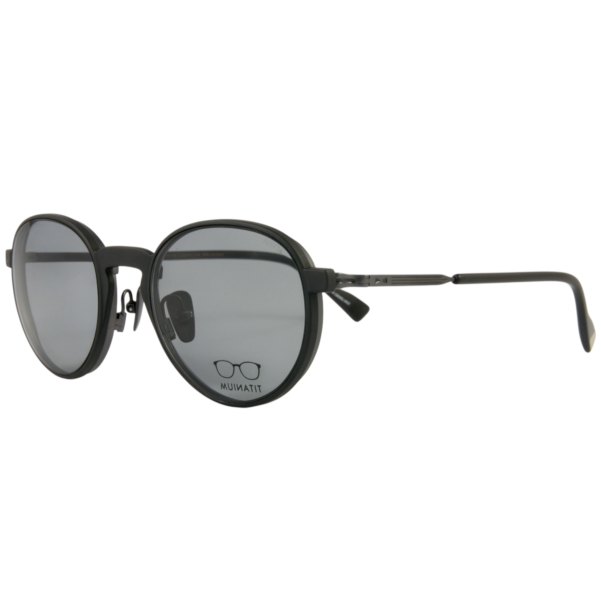Unisex γυαλιά οράσεως SNOB MILANO σε στρογγυλό σχήμα. Ο σκελετός είναι μεταλλικός (τιτάνιο) σε μαύρο χρώμα και διατίθεται με μαγνητικό clip-on με φακούς από την κορυφαία εταιρία ZEISS.