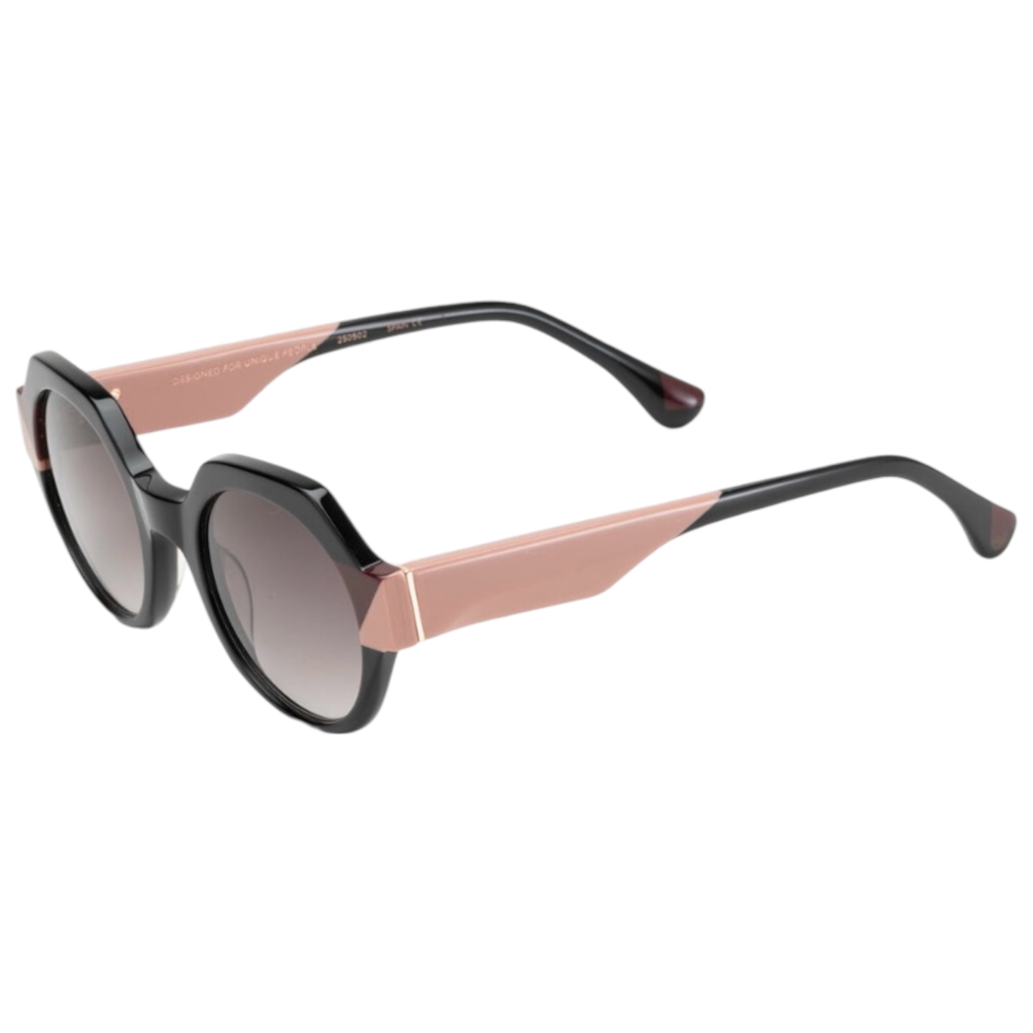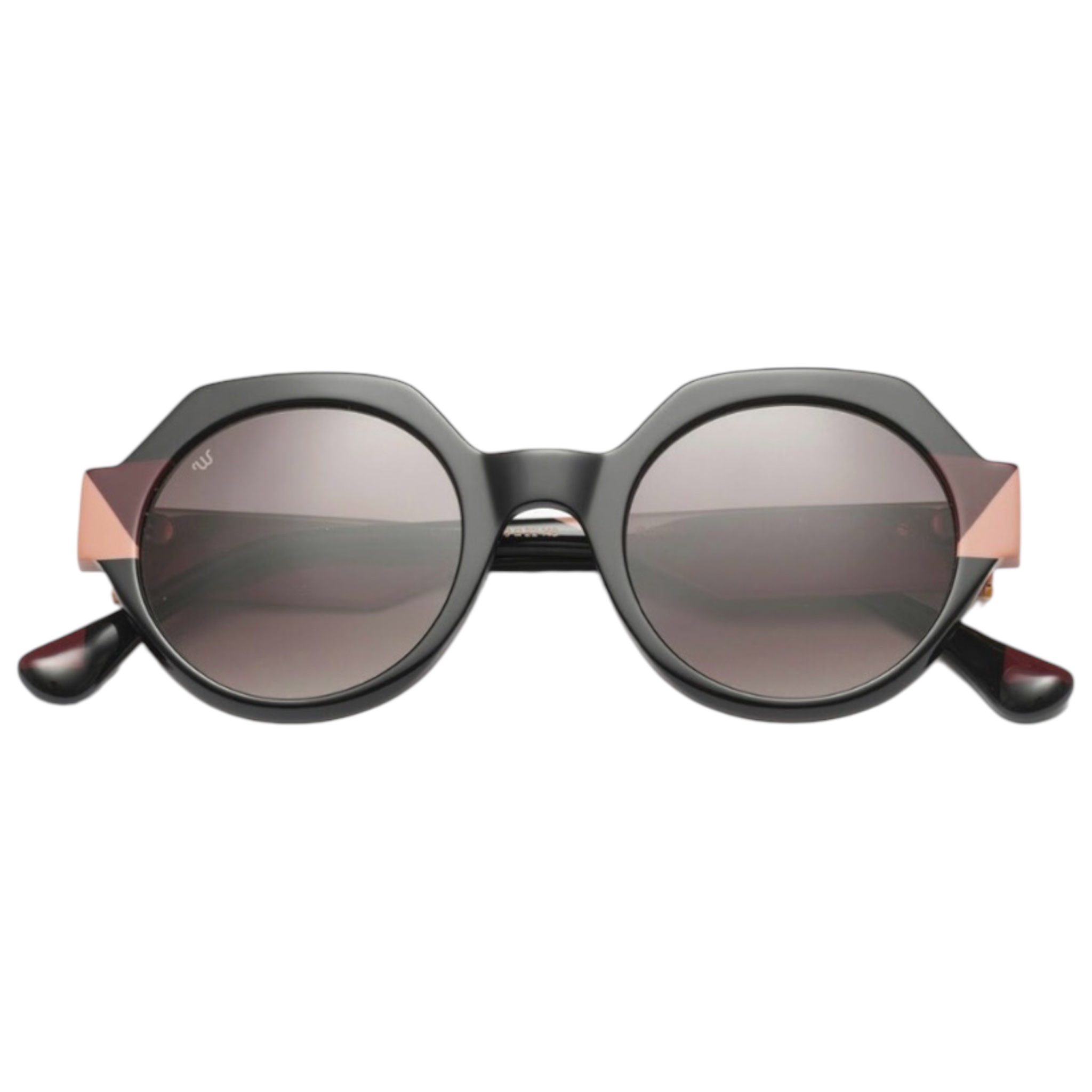 Γυναικεία γυαλιά ηλίου WOODY’S BARCELONA σε στρογγυλό σχήμα. Ο σκελετός είναι κοκάλινος σε μαύρο χρώμα με ροζ λεπτομέρειες και fume degrade φακούς που έχουν εσωτερική αντιανακλαστική επίστρωση (anti-reflective coat) και παρέχουν ολοκληρωμένη προστασία από την UV ακτινοβολία.